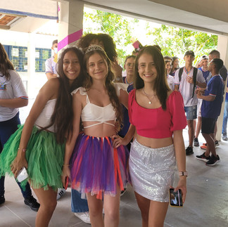 O clima de alegria e descontração contagiou não só os alunos, mas também os professores e funcionários da escola, que entraram na brincadeira e vieram fantasiados para curtir esse momento de diversão com os estudantes.