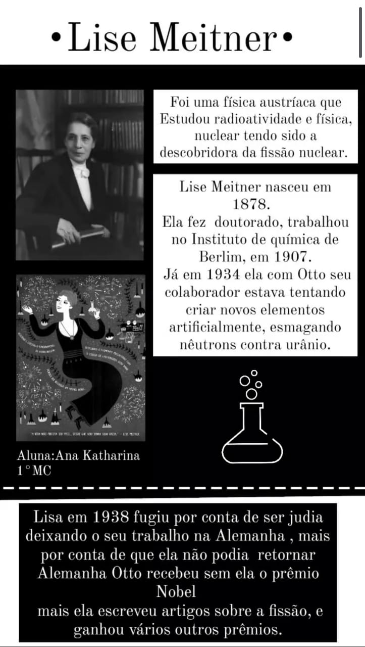Com uma ótima pesquisa os estudantes foram atrás de grandes mulheres da ciência mundial e trouxeram um pouco da história de vida e conquista delas.